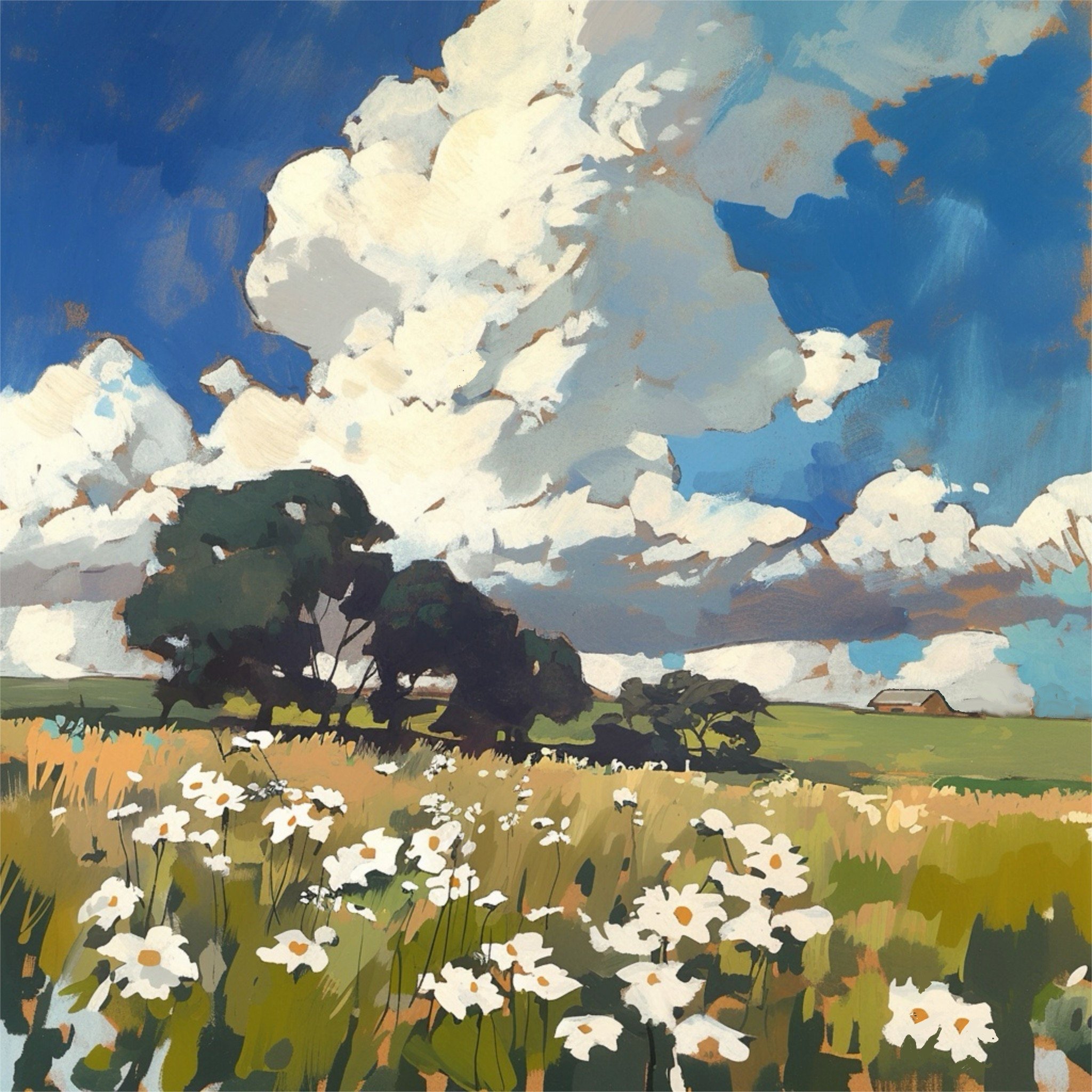 Storms have always stirred something deep in me—they’re one of my favorite things to paint. I grew up on the open plains, where skies like this would roll in with a kind of quiet power you don’t forget. This moody scene carries that same energy: dramatic, untamed, and alive.
